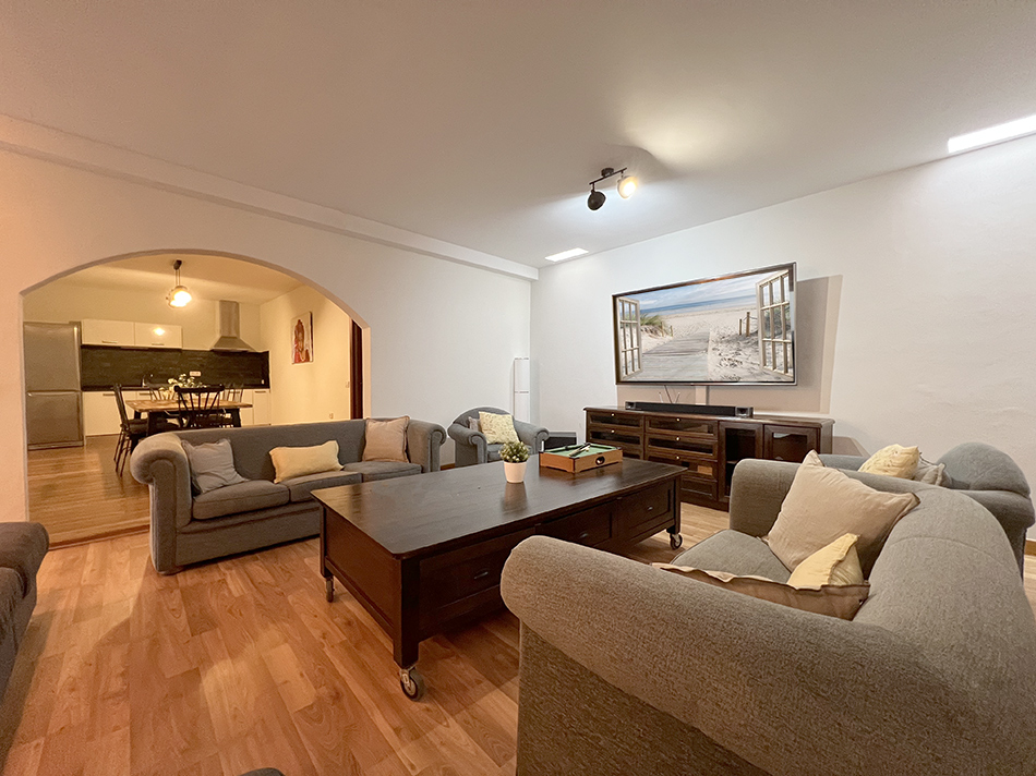 • Salón luminoso con techos altos, creando una sensación de amplitud y luminosidad.