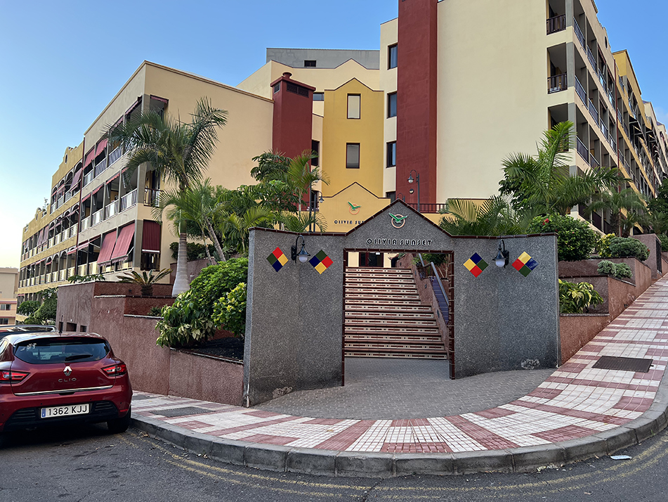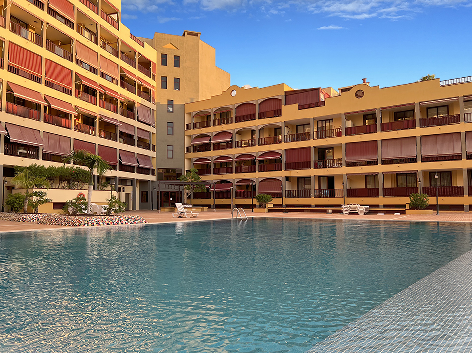 Le bâtiment dispose d'une grande piscine avec des plantes tropicales, d'un parking, d'ascenseurs, d'un système de sécurité 24h/24 et de caméras. À proximité du complexe se trouvent un supermarché Hiperdino et une fruiterie. L'infrastructure est bien développée : boutiques, pizzerias, nombreux restaurants, boutiques d'excursions et salons de beauté. La plage de sable noir Playa la Arena est à seulement cinq minutes à pied.